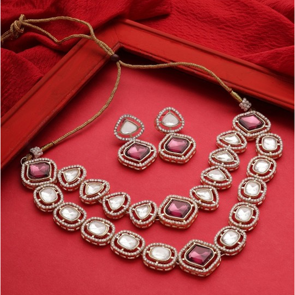 Gold-Plated Stones & Austrian Diamonds-Studded Layered Jewellery Set